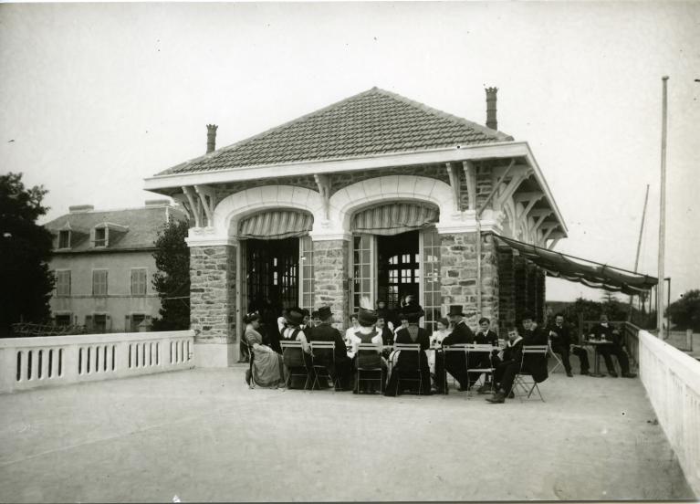 Le casino est inauguré en 1907. Il se situe à proximité de l’embarcadère de la pointe de la Perrière. Cette construction est composée de quatre baies vitrées au rez-de-chaussée et sur sa terrasse. Cette dernière offre un large panorama sur la rade, Kernevel et la citadelle de Port-Louis. Ce lieu est alors très fréquenté par la bourgeoisie lorientaise qui y vient pour observer des courses de régates ou pour écouter des concerts les jeudis et dimanches. Outre son café et son restaurant, on retrouve également un court de tennis et une plage privée équipée de cabine de bains et le siège de la société nautique.