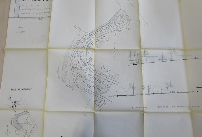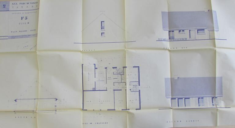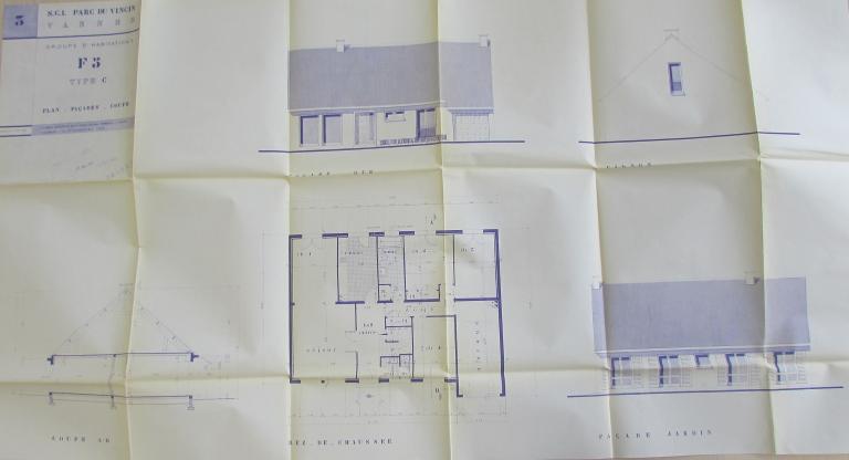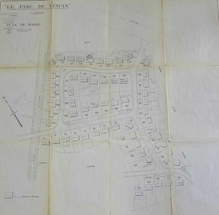 A l'époque de sa création, le lotissement est bordé au nord par la rocade ouest de Kercado et les terrains de messieurs Lampré et Mellec, à l'est et au sud par les propriétés Plunian et Fraysse et à l'ouest par une voie communale allant de Bernus au manoir de Kercado. Le lotissement fait l'objet d'un premier permis de construire en 1968 pour 71 habitations individuelles pour S. Cimolaï, suivi en 1972 d'un autre permis. Au total 130 lots entre 409 m² et 1360 m², à usage unique d'habitation et de professions libérales. Les maisons de différents types ( A et D F6, B et C F5) sont dressées sur les plans de l'architecte Michel Morin. Le lotissement est desservi par des voies privées qui deviennent communales par la suite. Le lotissement possédait un règlement définissant les constructions.