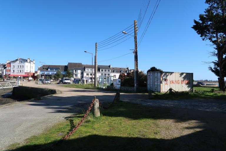 Le parking actuel d'environ 6 600 m2 répond aux besoins en stationnement des usagers du bateau bus qui assure la liaison quotidienne de Locmiquélic vers le port de pêche depuis 1927. Il couvre l'ancien étang cédé à la commune par donation par Rallier du Baty en 1937. Le comblement de la lagune s'étend sur quelques décennies. Il débute en 1945 au moyen des débris des destructions causées lors des bombardements alliés pendant le second conflit mondial. 25 ans plus tôt, le 27 novembre 1920, le conseil municipal délibère pour la première fois de son histoire sur l'assèchement de l' ancien « port abri aux bateaux pêcheurs qui avaient un faible tirant d’eau ».