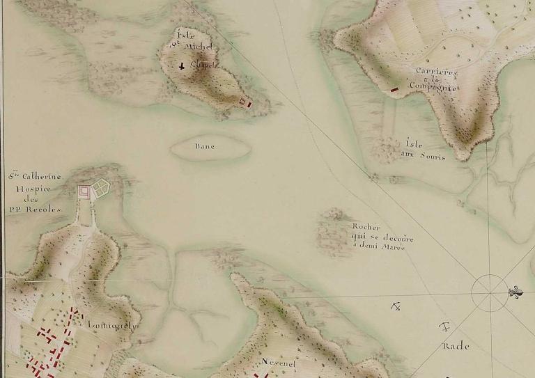 L’île ou ilette de Sainte-Catherine est située sur la rive gauche de la rade, à proximité de l’île Saint-Michel. Elle est lieu de passage pour remonter les fleuves Blavet et Scorff et incontournable pour rejoindre Plœmeur sur la rive droite. Ce petit point si discret dans la rade est pourtant d'une importance majeure dès le 15e siècle à l’arrivée des Franciscains.