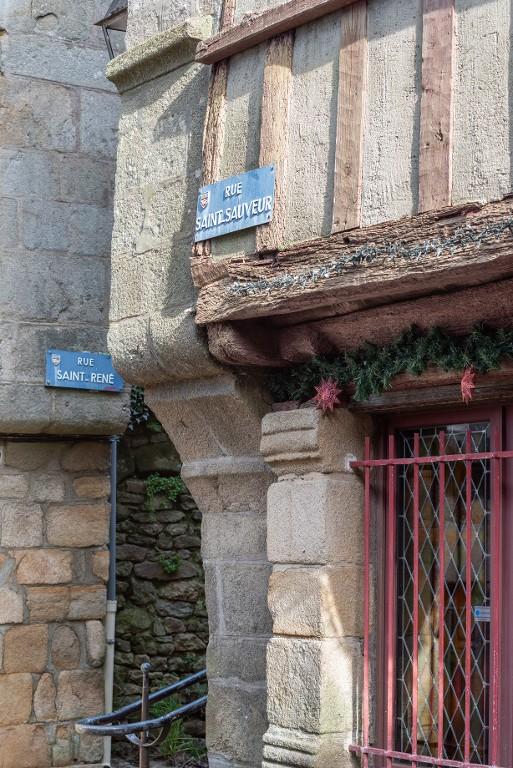 Rue Saint-René, une statue en chêne représentant Saint-Goustan est placée sur un dais de pierre sculpté à la fin du 20e s. Endommagée en 2022, elle fait l'objet d'une restauration jusqu'en 2024.