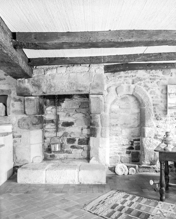 La pièce du rez-de-chaussée est chauffée par une cheminée au manteau droit et dont les chanfreins très larges des piédroits plaident pour une datation ancienne (14e-15e siècles). Une porte intérieure plein cintre murée la jouxte.