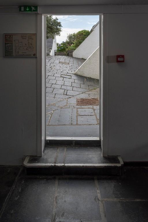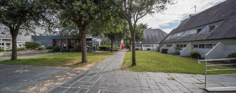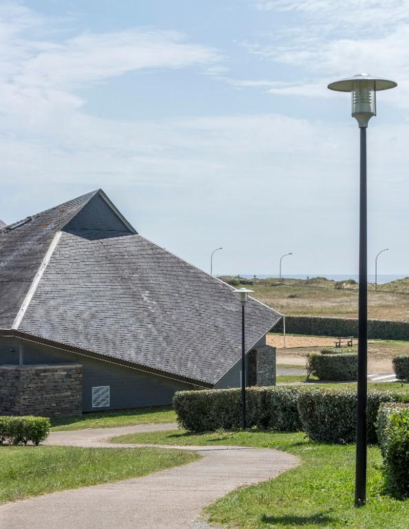 La résultante de ces choix est une organisation spatiale directement issue de la topographie naturelle et artificielle : les volumes bâtis coiffent les masses de sable et de béton et s'orientent vers la mer et la Laïta.
