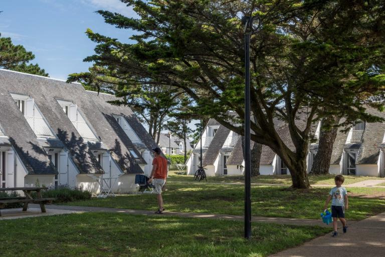 À l’est et au nord du centre, les logements familiaux - des appartements d’une, deux ou trois pièces - se répartissent en deux « quartiers » d’habitation. Chaque unité dispose de chambres, d’un cabinet de toilette équipé d’un WC, et, à l’étage, d’une loggia. Leur double orientation assure un ensoleillement optimal et offre, selon l’implantation, une vue sur la mer ou sur la dune. A l'origine de la conception, l’accès des véhicules se fait par une voie de crête axée nord-sud menant au centre commun, tandis que les quartiers résidentiels sont exclusivement desservis par des cheminements piétons. Des parkings sont aménagés en face du hall d’entrée, complétant ainsi le système de voirie. Actuellement, l'accès des véhicules ne se fait que par la route touristique en contrebas du site (D152).