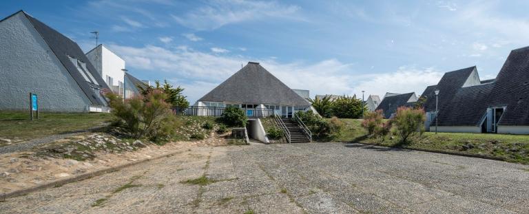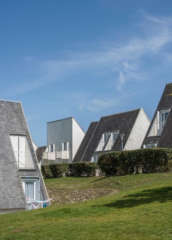 Les bâtiments présentent une grande diversité de formes géométriques, mais se trouvent unifiés par un motif commun : le toit pentu en ardoise descendant jusqu’au sol. Cette silhouette, à la fois structurelle et plastique, est caractéristique du modèle architectural dit en "A-frame" qui s'inscrit dans une esthétique vernaculaire modernisée, très en vogue dans l'architecture de loisirs des années 1960 et 1970. En supprimant la distinction classique entre mur et toiture, le pavillon prend l'aspect d'un volume monolithique tout en exprimant une volonté affirmée d’intégration au paysage. À Guidel, cette réinterprétation de la "maison-toit" permet de minimiser l'impact visuel des façades face aux vents du large, tout en évoquant l'image protectrice et archaïque de la tente ou de la cabane, icônes du campement de vacances.