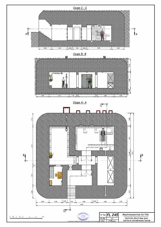 De type Fl 245, cette construction est désignée en allemand Machinenzentrale für Flak, centrale à machines pour batterie d’artillerie antiaérienne.