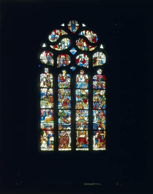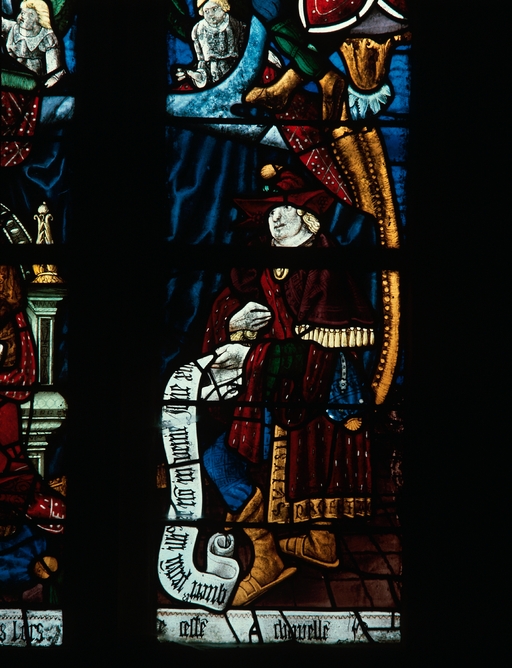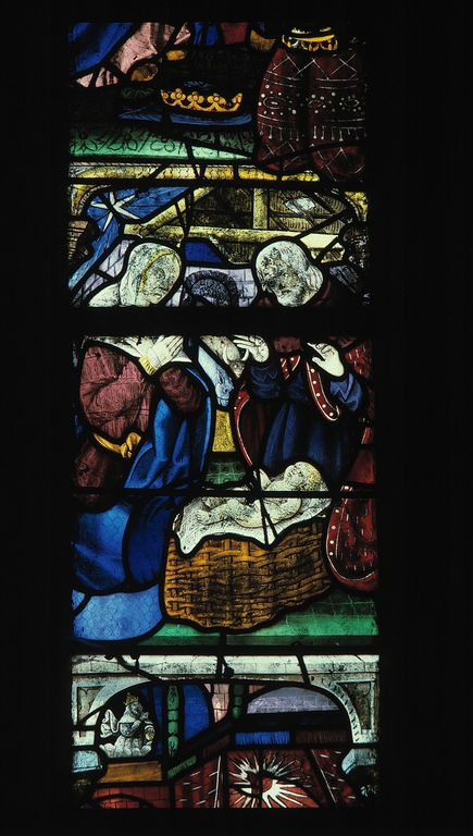 Verrière : Arbre de Jessé, enfance du Christ, chapelle de Lansalaün de Notre-Dame de Folgoat (Paule),