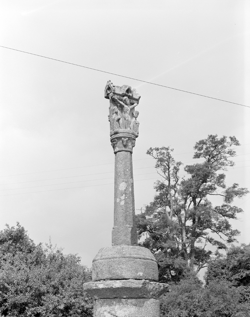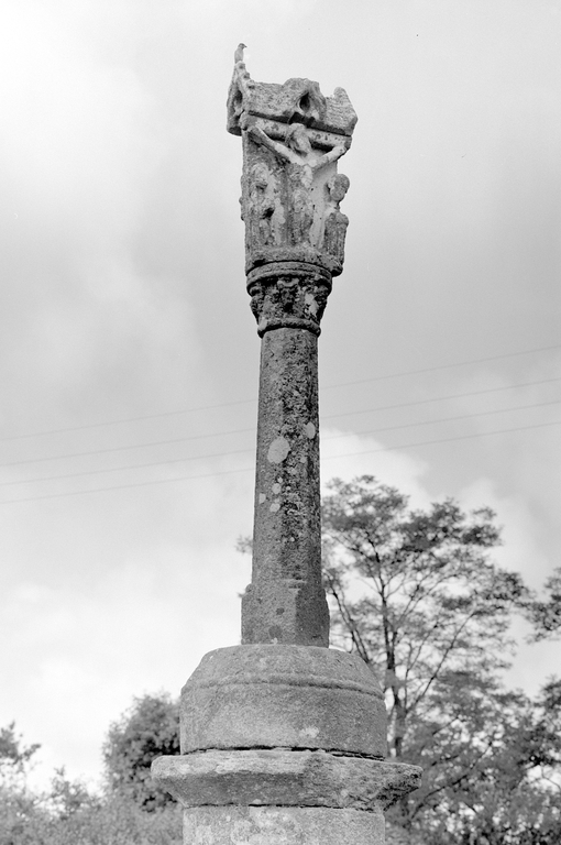 Croix à fût de section polygonale posée sur une base, un socle et un soubassement. Socle et soubassement appareillés.