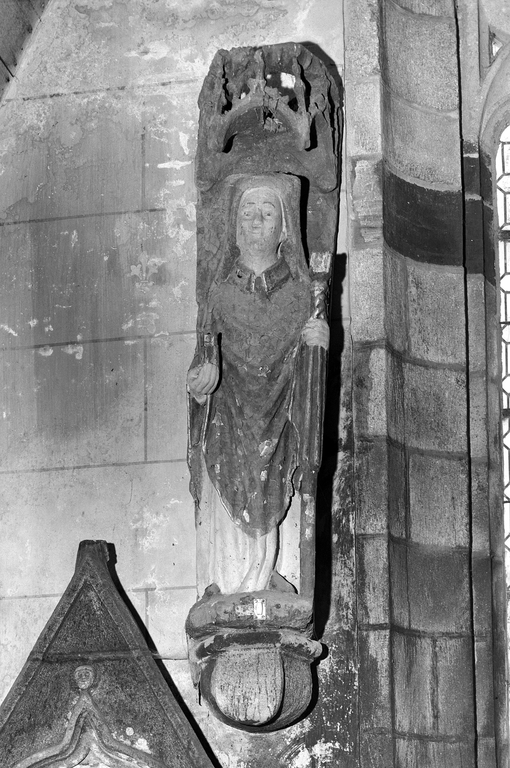 Dais architecturé faisant corps avec la représentation de saint Colomban sculptée en ronde bosse.