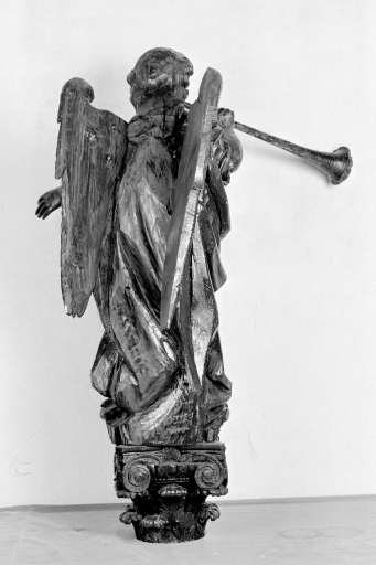 Elément provenant du couronnement de la chaire à prêcher de l'église paroissiale, démontée et déposée dans le grenier de la chapelle.