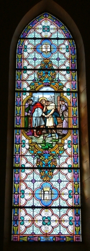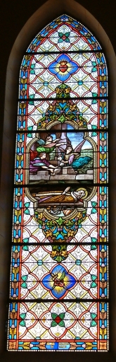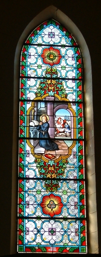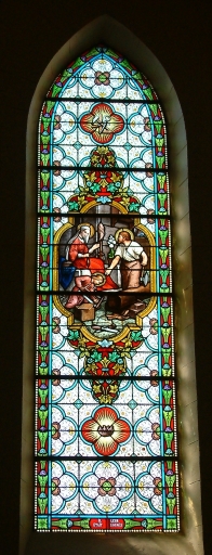 Don de la famille Feillet (baie 0), don des associés de l'apostolat de la prière (baie n°5), don des associés de la confrérie du T. saint rosaire, institut catholique (baie n°6). Nous le suivrons un jour (baie n°7), travailler en priant (baie n°9), les anges construisent sa tombe (baie n°15), heureux les miséricordieux (baie n°17), heureux ceux qui souffrent (baie n°19), toujours avec Dieu (baie n°21), heureux les coeurs purs (baie n°18), heureux les pauvres (baie n°10), faites pénitence (baie n°12), indissolubilité du mariage (baie n°14), il leur était soumis (baie n°16).