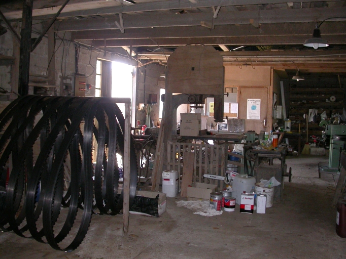 Cette scie à Ruban Gillet a été installée dans les années 1960 dans le second atelier de la scierie Courtel. Actuellement, elle est conservée dans l'atelier de réparation.