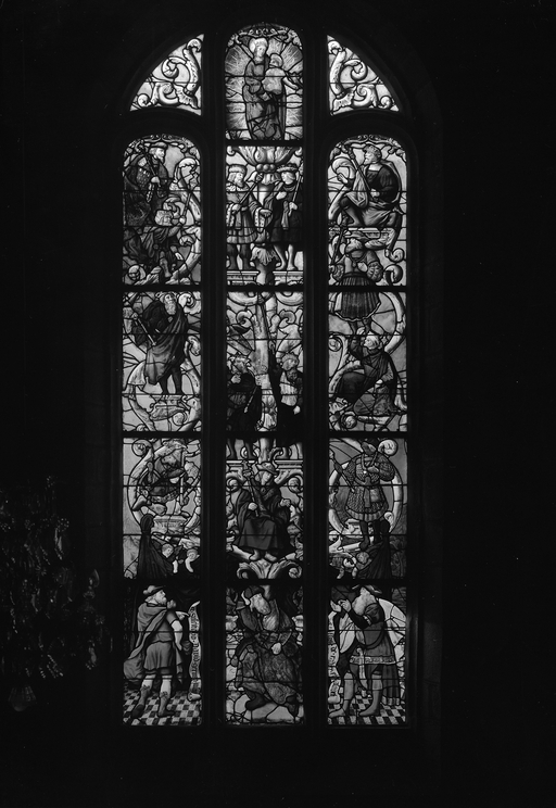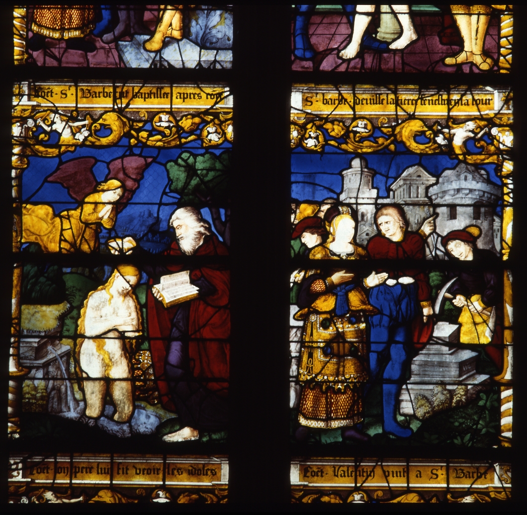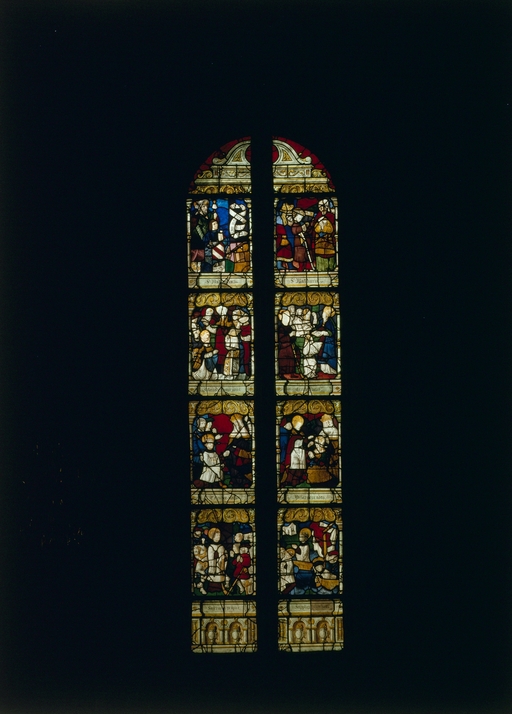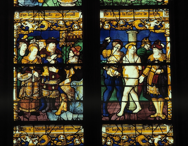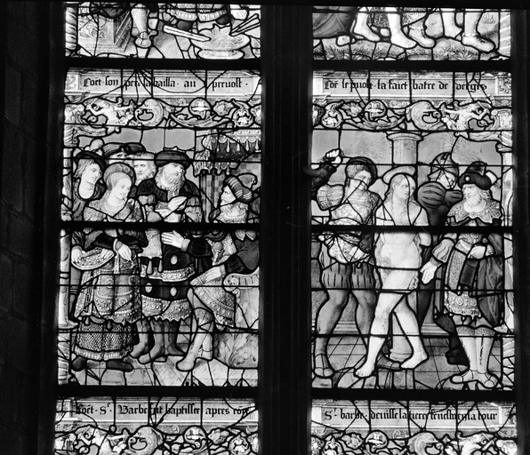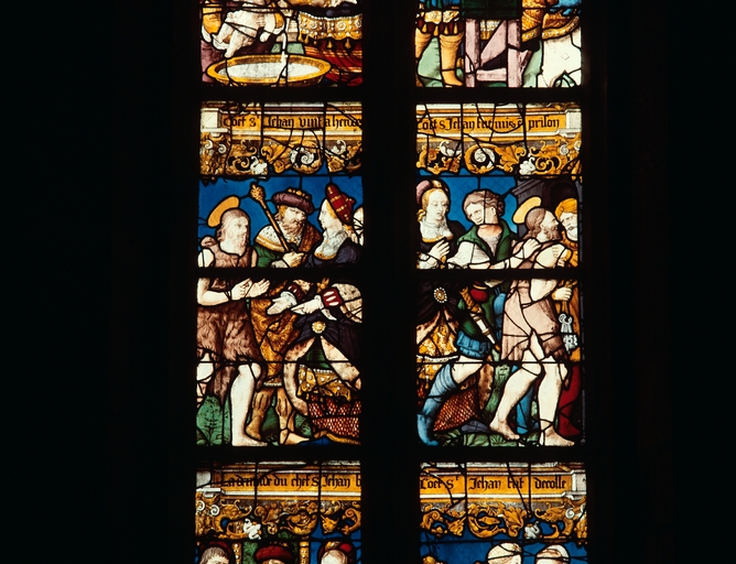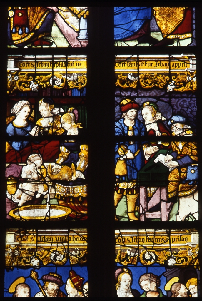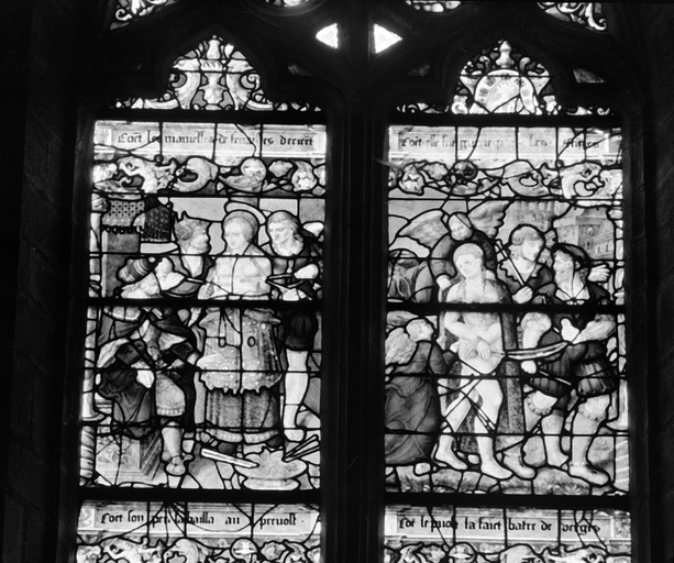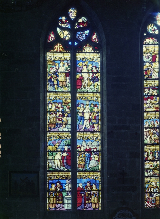 Verrières (6) : légendes de saint Mathurin, sainte Barbe, saint Yves, arbre de Jessé, scènes de la vie de saint Jean-Baptiste et de l'enfance du Christ, église Saint-Mathurin (Moncontour)