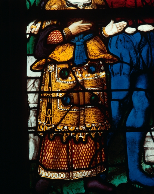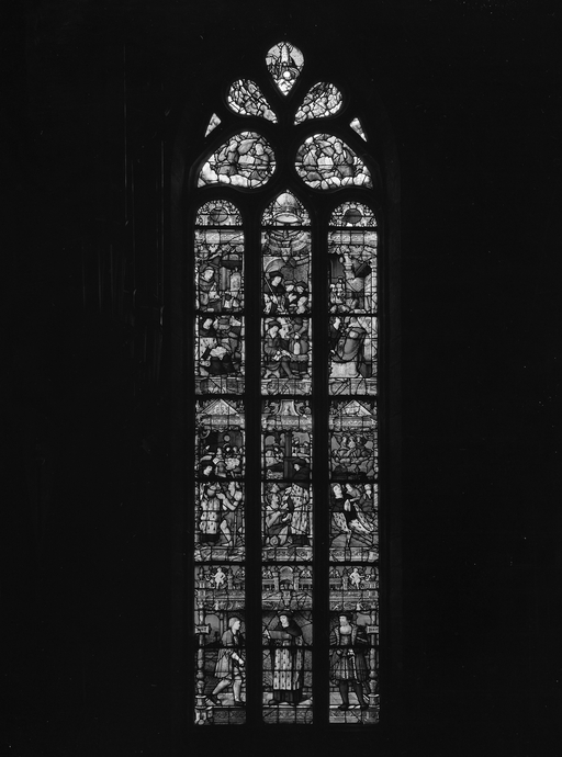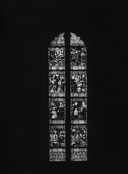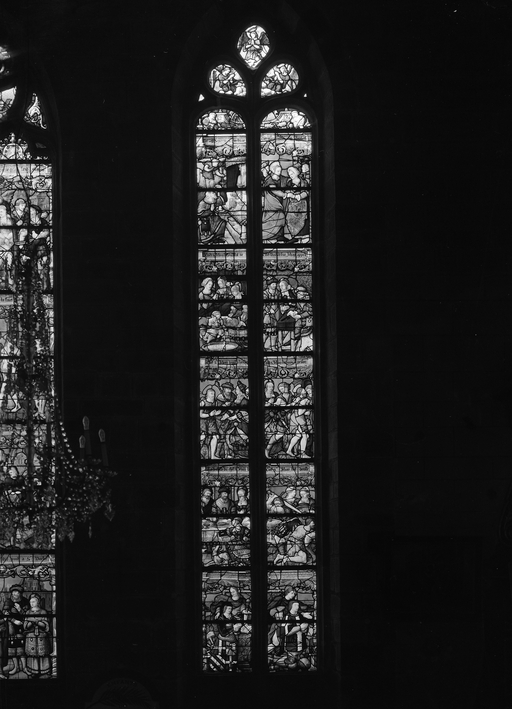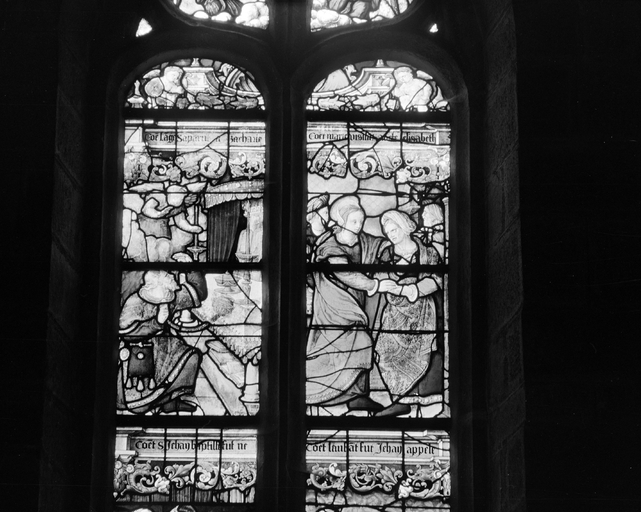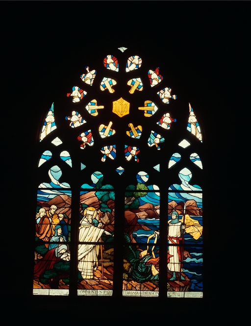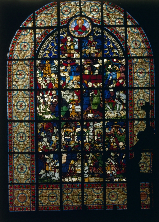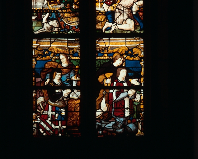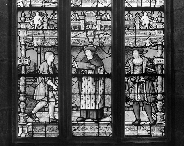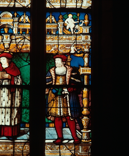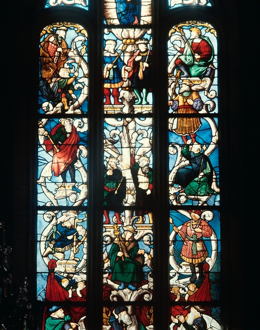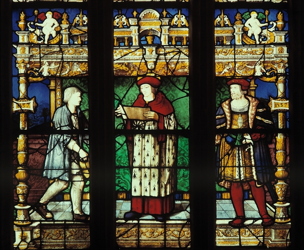 Vitrail de saint Mathurin exécuté en 1520, offert par Jacques de la Motte-Vauclerc. Vitraux de l'Arbre de Jessé, de saint Jean-Baptiste, de sainte Barbe exécutés vers 1538. Vitrail de saint Yves exécuté en 1537. Maîtresse-vitre exécutée entre 1522 et 1531.