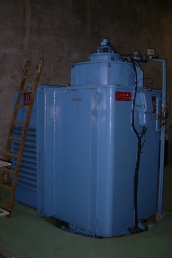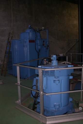Inscription concernant la technique : générateur asynchrone/Type PGGBY 630 D 10/N° 340526 1983/ Protection IP 23/ Service S1/ Cl. D -/ CdeltaI 30 Ambiance 40/Isol. Cl F Masse Kg 9 340/Normes -/NFC 51 100 KvA1 537 Phases 3/HZ 50/Cos phi 0,75/Volts -/Amp - Delta/Y 380/tr/mn 608/Rotor à embt 1160/Freq - Hz - V - Made in France 77430 Champagne /Seine. Inscription concernant la technique : générateur asynchrone/Type PCGBY 355 LG/N° 340525 1983/ Protection IP 23S/ Service 1/ Cl. D FM/100 / CdeltaI 80 Ambiance 40/Isol. Cl F Masse Kg 2050/Normes -/NFC 51 100 KvA1 427 Phases 3/HZ 50/Cos phi 0,82/Volts 380/Amp 650 Delta/Y 380/tr/mn 1014/Rotor à cage embt 1160/Freq - Hz - V - Made in France 77430 Champagne /Seine. Inscription concernant la technique : graissage de roulements/Qualité Shell Alvina R3/injecter 85 grammes de graisse par roulement/toutes les 5650 heures de fonctionnement/Vider les bacs à graisse après 3 ou 4 graissages d'appoint/avant de changer de qualité de graisse consulter la notice d'entretien/ 38175-017.