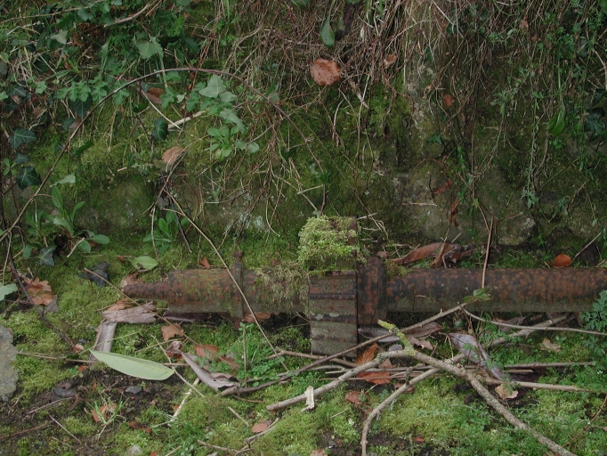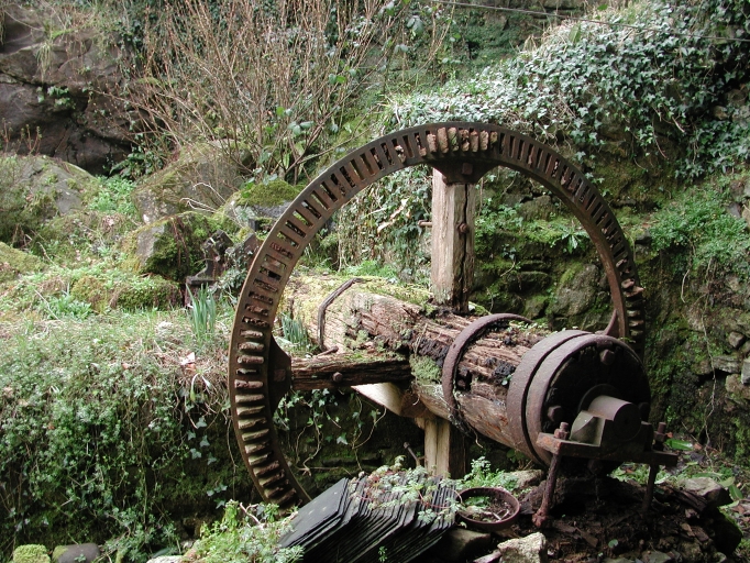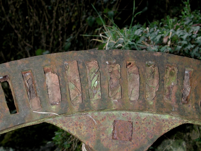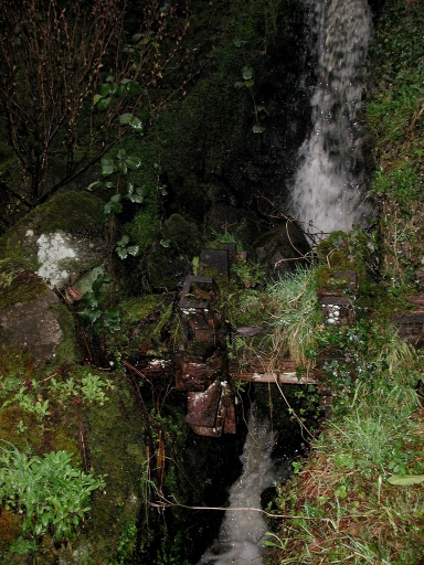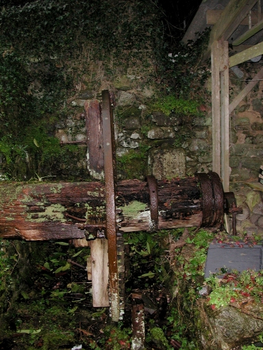 Cette roue et son engrenage (arbre de couche, couronne et rouet) sont associés à l'ancien moulin (dit à roue verticale et à axe horizontal), appelé moulin Frontière.