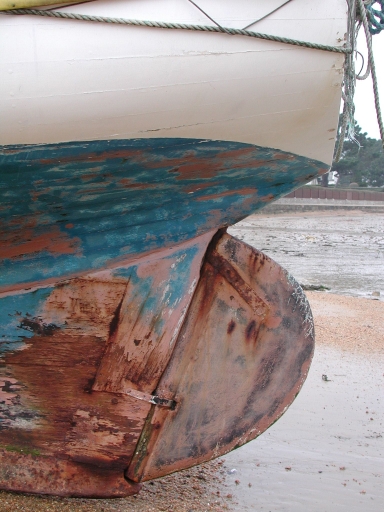 Construction à franc bord sans dérive, en membrures franches et ployées, avec une fort assemblage quille, étambot et un gouvernail associé à un tube d'étambot, avec jaumière.