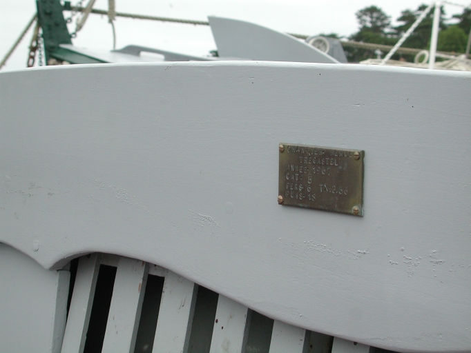 l = 610 ; la = 240. Longueur hors-tout : 610 cm ; largeur au maître bau : 240 cm ; tirant d'eau : 95 cm ; tonnage : 3, 56 tonneaux.