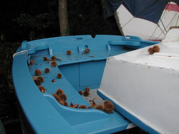 La coque présentée est un canot Le Flem, construit en 1960, entièrement restauré par le chantier Jean-Fraçois Colombier de Pleumeur-Bodou : bordées, membrures et pontage avant. Le "Chaquer" est un canot creux construit par le chantier naval Landouard de Locquémeau vers 1950. Il est actuellement en cours de restauration par J.F. Colombier, après que tous les hauts (bordées, préceintes) aient été refaits en sapelli par le charpentier, avec la préceinte de section plus forte et la serre. Le "Chaquer" mesure 4, 60 m de longueur pour 2, 10 m au maître bau. La charpente est en membrures sciées à l'avant et à l'arrière et en membrures ployées et rivetées au centre, avec un bordage en pin. Le petit pontage avant est à restaurer. Le canot aux fonds très plats est gréé d'une misaine. Il pratiquait la pêche à la senne à Trébeurden, qui reste aujourd'hui encore son port d'attache.