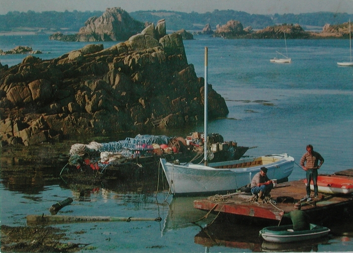 Si l'Île de Bréhat a été le terroir de nombreux marins à la grande pêche, depuis le 15ème siècle, peu de pêcheurs côtiers étaient dénombrés au début du 20ème siècle, alors qu'une cinquantaine de bateaux étaient recensés à la fin du 19ème siècle ('Pilote' de Thomasin, 1875). Il existait aussi à Bréhat une salaison pour le maquereau. En 1508, 4 ans après la date officiellement reconnue comme date de début de la Grande Pêche à Terre-Neuve par les historiens de Newfoundland, les marins de l'Île de Bréhat armaient la 'Bonne-Aventure' pour Terre-Neuve. La Charte de Beauport, datée de 1521, atteste de la présence ancienne des marins bréhatins dans les îles de Terre-Neuve. La tradition orale se souvient de Rateau, capitaine armateur baleinier et de Jean Rolland, premier baleinier de France. Cependant, nombre de Bréhatins ont fait construire des navires pour la grande pêche dès le 15ème siècle sur l'île. La technique de pêche aux casiers (homards et langoustes) aurait été introduite en 1720 par un marin de Guenesey, Brooke. La pêche côtière (aux casiers et aux lignes) était davantage l'occupation des marins retraités (du commerce ou de la Royale). La pêche aux grands crustacés s'est développée après la seconde guerre mondiale, sous l'influence des pêcheurs loguiviens et armoricains. La pêche aux coquillages a été initiée par Charles Le Bideau dans le Ferless, avec la drague aux praires. En 1956, la commune de Bréhat comptabilisait 852 habitants, 2 écoles, plusieurs commerces (2 boulangers, 2 bouchers) et seulement quelques marins-pêcheurs, en nombre restreint en raison de l'absence de mareyeur sur place. Les pêches pratiquées étaient les oursins (au filet en triangle avec trois radasses) vendus directement à l'Arcouest, les coquilles Saint-Jacques et les praires (pêchées avec un grappin coiffé dans le Port-Clos). La coupe du goémon était réservée aux Bréhatins sur les rivages de l'île, en raison du manque de bois de chauffage. Chaque maison disposait d'un droit coutumier du nom 'd'aviz', soit la jouissance d'une portion de territoire réservée pour chaque famille à la coupe du goémon de rive. Cette pratique goémonière a perduré jusqu'au milieu du 20ème siècle. Neuf bateaux de pêche ou de travail ont été repérés dans le cadre de cet inventaire, dont deux bateaux, sont aujourd'hui à l'état d'épave ou détruits ('Paul Langevin', épave et 'Poilu' détruit). Ces bateaux sont tous désarmés en pêche professionnelle. Les bateaux repérés : - 'Ferless', ancien bateau de travail et de transport, construit en 1922, en état de naviguer ; il appartient toujours à la famille Colin - le 'Poilu', ancien bateau de pêche, construit en 1920, détruit, mais coque reconstruite à l'identique en 1993 - la 'Petite Laurence', ancien caseyeur de Charles Le Bideau (fils), aujourd'hui désarmé et à l'état d'épave (déplacé dans l'estuaire du Trieux) - le 'Paul Langevin', ancien caseyeur, fileyeur, construit à Audierne, navigue de 1969 à 1978, avec Charles Le Bideau (père), revendu à François Geffroy en 1978, puis désarmé sur la grève de Nod Goven - La 'Corinne' de Michel Bocher, désarmé en 2007, après le décès de son propriétaire, moteur refait, armé aujourd'hui en plaisance - deux bateaux non identifiés, immatriculés à Paimpol, dont un bateau, désarmé - un monotype de petite pêche de Bréhat (construction paimpolaise) - le 'Solitaire', ancien bateau de petite pêche, construit à Primel par le chantier Roland en 1934 (29), déplacé sur la commune de Lanmodez et armé aujourd'hui en plaisance - le 'Pinson', canot demi ponté avec une cabine arrière, de petite pêche côtière, appartenant à Yves Corlouer, construit dans un chantier paimpolais, désarmé en 1993 et à l'état d'épave aujourd'hui. -Sept autres bateaux de pêche, qui ont été la possession successive d'une famille de marins pêcheurs de Bréhat, Le Bideau, ont été décrits avec leur histoire de pêche et l'iconographie correspondante : 'Marie-Louise', 'Poilu', 'Fleur d'Ajonc', 'Even Mor', 'Angélus', 'Paul Langevin' et 'Azkarra'. Ces bateaux ont tous disparu ou ont été déplacés dans d'autres localités. Les quatre bateaux suivants ont été étudiés : 'Ferless', 'Poilu', 'Corinne' et 'Paul Langevin'. Cependant, seul le 'Ferless' est en état de naviguer après une restauration complète. Les différents bateaux de pêche de la famille Charles Le Bideau (père et fils) : - 'Marie-Louise', armé de 1943 à 1946 - 'Poilu', armé de 1946 à 1961, pour différentes pêches, dont le goémon, les praires et les casiers - 'Fleur d'Ajonc' (construction paimpolaise, Kerbiguet, 1910), armée de 1961 au 28 février 1965, en particulier pour la drague aux praires et aux coquilles St-Jacques et la pêche aux oursins, bateau coulé à l'entrée du Guerzido - 'Even Mor', construit à Camaret, armé du 1er mars 1965 au mois d'août 1965 (bateau naufragé) - 'Angélus', construit à Douarnenez, armé de 1965 au 24 octobre 1969, avec un moteur de 120 cv (vendu ensuite à Paul Léon de Bréhat) - 'Paul Langevin', construit à Audierne, armé entre le 30 octobre 1969 et le 19 juin 1978, vendu ensuite à François Geffroy, puis revendu à Albert. L'Angélus' et le 'Paul Langevin' faisaient la coquille, les poissons et les araignées au filet et les casiers sur le plateau des Roches Douvres, à la grande époque des casiers en forme de tonneau, en bois. - 'Azkarra', construit au chantier Roland à Primel, pour le compte de François Tanguy de Moguériec, armé par le père Charles Le Bideau, du 26 février 1975 au 10 juillet 1975 et revendu ensuite à son fils, qui l'a vendu pour acheter la 'Petite Laurence' en 1980. Au début des années 1970, certaines vedettes à passagers, dont la 'Mésange', accompagnée du bateau de pêche 'L'Apocalypse' (construit par Rolland à Plougasnou) allaient chercher des homards sur les côtes anglaises avec Michel Bo