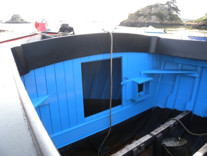 La coque de ce bateau de petite pêche est non pontée, avec un tillac à l'arrière. La charpente a une râblure ronde, une quille longue, des membrures en chêne et un bordé d'échouage. Le bordage et la serre sont en pin. Le canot est motorisé in-board. Le bateau est en très bon état. Il a une tonture très marquée et des formes tulipées à l'avant avec une étrave ronde et une forte quête sur l'avant.