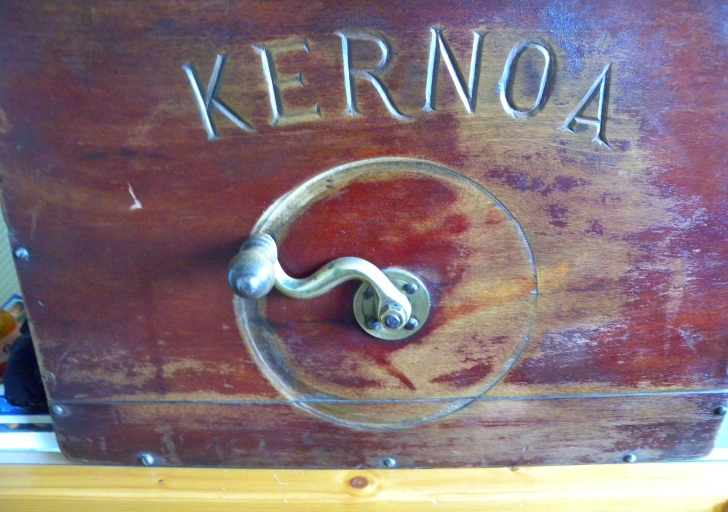 Cette corne de brume équipait les navires de grande pêche pour Terre-Neuve. Le mécanisme intérieur est daté du début du 20ème siècle. Cette corne de brume, de fabrication norvégienne, était fournie par le constructeur naval Bonne-Lesueur en particulier à l'armement Guével de Paimpol. Elle a conservé le nom de Kernoa, adresse du chantier naval.