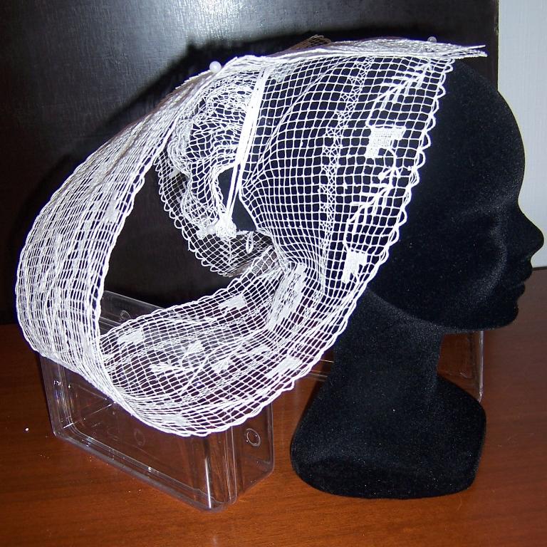 COLLECTAGE DE BRODERIES EN POINT DE TOILE ET FILET D'ART POUR LE BONNET DE LA CORNETTE