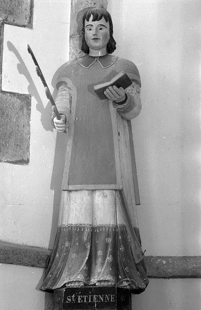 Statue (d'applique, petite nature) : saint Etienne, église paroissiale Saint-Justin (Guiler-sur-Goyen),