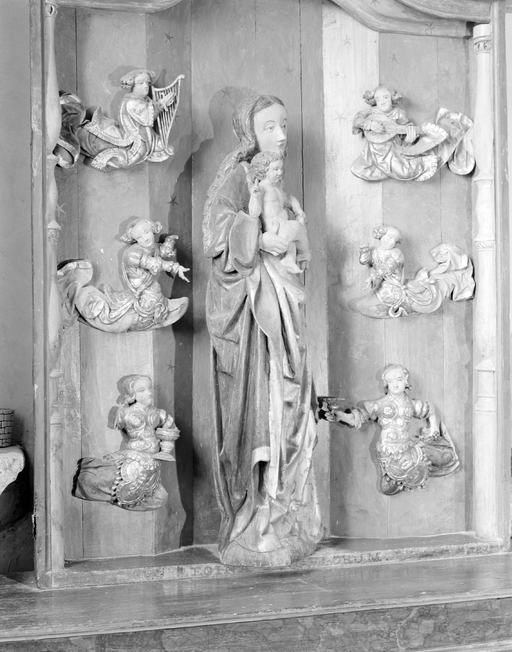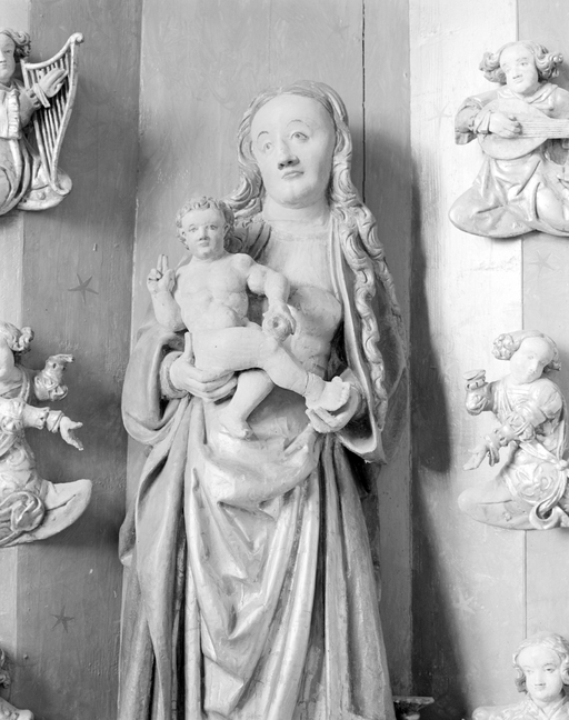 Ensemble du 16e siècle ? ; statue de la Vierge peut-être d'origine flamande ou influencée par des modèles flamands.