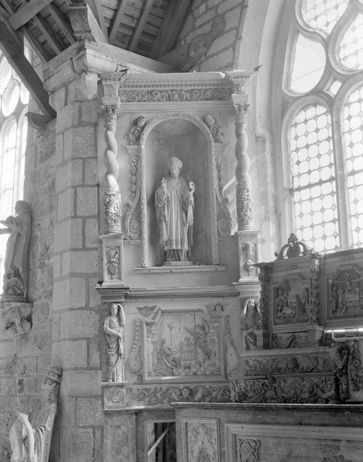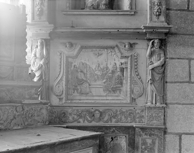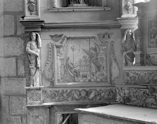 Retable exécuté par un atelier local ou régional en 1666 pour I.Caillant, recteur de la paroisse ; autel du 18e siècle.
