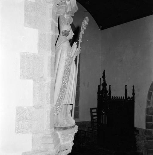 Statue (d'applique, grandeur nature) : saint Corentin, église paroissiale Saint-Mahouarn (Plomodiern),