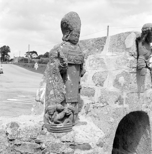 Statue (petite nature, d'applique) : saint Nicolas, rue de la Fontaine (Plomodiern)