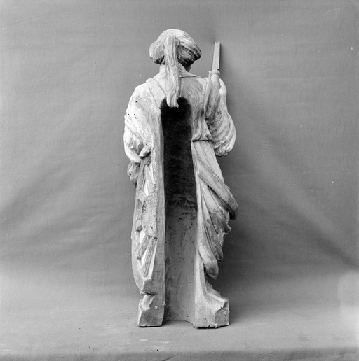 Mauvais état de la polychromie, manques, vermoulures ; l'épée de Catherine est cassée.