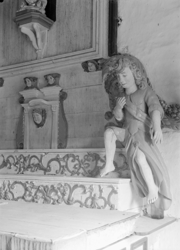 Retable et 2 statuettes d'anges, chapelle Notre-Dame du Paradis (Poullaouen),