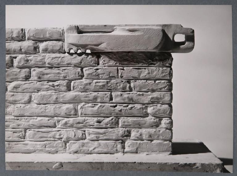 Il a prévu une plus grande hauteur de la partie inférieure, ce qui confère à l'ensemble de meilleures proportions. D'autre part, tout en gardant les formes massives de la première maquette, il l'a étudiée pour qu'elle puisse être réalisée en grand en tôle de fer peinte en noir et rouge.