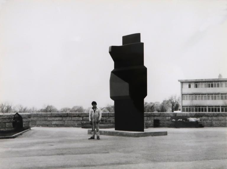 Le 16 janvier 1968, l'Inspecteur principal de la création artistique, Maurice Allemand émet un avis "entièrement favorable" pour la sculpture d’Émile Gilioli à la suite de sa reprise de la maquette. Une note manuscrite, signée d'un paraphe illisible, précise à ce propos : "En accord avec M. Allemand, je me suis rendu chez Gilioli qui m'a montré sa nouvelle maquette — ou plutôt sa maquette définitive, car l'artiste est conscient de l'insuffisance que celle qui fut présentée en commission. La forme de cet ensemble ou "totem" a été reprise, relevée : elle paraît moins ramassée. Coloration en rouge et noir, dont la répartition m'a semblée heureuse."