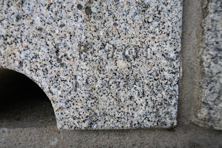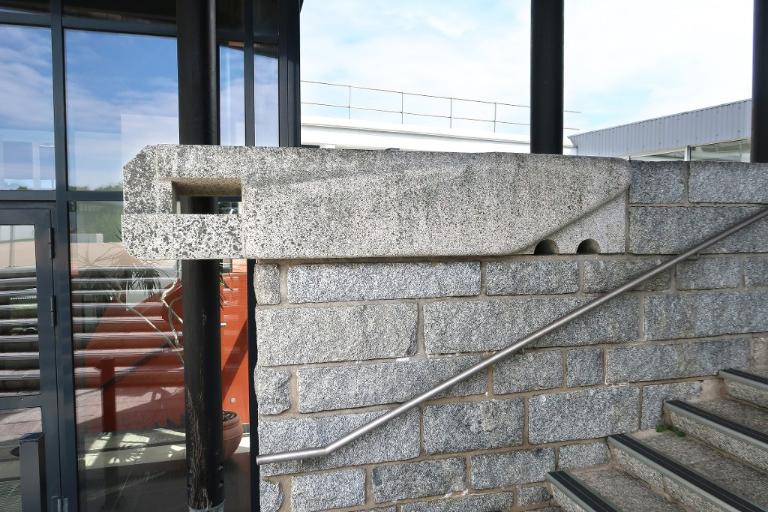2°) M. Revol : Une sculpture en granit bleu adouci de "Le Hingle", de 2,4 m de longueur 50 cm de hauteur et 55 cm de largeur environ, débordant légèrement du mur d'entrée sur lequel elle serait posée.