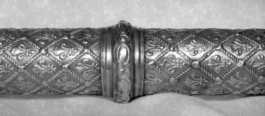 Une addition à la croix originale de loque a été faite à une époque indéterminée, trois fleurs de lys paraissent dater du 18e ou 17e siècle.