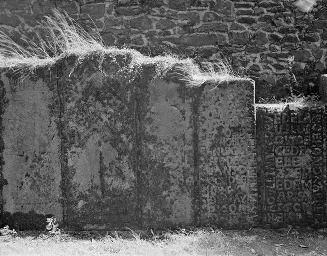 Dalle 1 : CY GIST LE/CORPS DE/FEV NOBLE/HOMME E/VSEBE DE/BREGELS/IEVR. DEN/EGVERIEN/DECEDE/LE 5 MAY/1685/I.P.P. ; dalle R : ... N QVADZ. LIEVT/ENANT DE FO/VLGERES E SR DE PAT... 1565 ; dalle S : CI GIST (G) YONE GODIN VIVANTE/FME DE ME GUILLE... 4 SEPT M SR DE/DLE... DECEDA LE 20 OCT/OBRE 1575 ; dalle 4 : CY GIST/SIRE PIERRE LEMEI/GNAN SIR DE/LABOCERY ELBOVAL DECEDA LE/31 JOR/DE JUIL/LET 1582 ; dalle 5 : CI GIST LE CORPS DONORABLE FEME JULIANNE/BASTON VIVANTE FEME DE SIRE/SULPICE/THOMAS/SR DU/TERTRE D/ECEDE LE/... AVRIL 1584 ; dalle 6 : CI GIST HON/ORABLE HOM... FRANÇOIS (BREIL) /VIVANT S/DVCHAMP (?) AVX CHIENS QVEL A F/ODE CEA VNE MESSE/PAR CH. M./LVNDY D/ECEDE LE/14E DE V/ING/1587 ; dalle 7 : inscription effacée ; dalle 8 : inscription effacée en bordure ; dalle 9 : calice et croix gravés en creux ; dalle 10 : inscription effacée ; dalle 12 : CI GIST/HONORABLE FEMME MICHELLE GUI/LLET VIVANTE EPOUSE DE SIRE... SIEUR DU CLOS BOURGEOIS QUELLE FONDA UN OBIT EN L'EGLIS/SE DE C/EANS D/ECEDEE/LEdalle 1 : CY GIST LE/CORPS DE/FEV NOBLE/HOMME E/VSEBE DE/BREGELS/IEVR. DEN/EGVERIEN/DECEDE/LE 5 MAY/1685/I.P.P. ; dalle R : ... N QVADZ. LIEVT/ENANT DE FO/VLGERES E SR DE PAT... 1565 ; dalle S : CI GIST (G) YONE GODIN VIVANTE/FME DE ME GUILLE... 4 SEPT M SR DE/DLE... DECEDA LE 20 OCT/OBRE 1575 ; dalle 4 : CY GIST/SIRE PIERRE LEMEI/GNAN SIR DE/LABOCERY ELBOVAL DECEDA LE/31 JOR/DE JUIL/LET 1582 ; dalle 5 : CI GIST LE CORPS DONORABLE FEME JULIANNE/BASTON VIVANTE FEME DE SIRE/SULPICE/THOMAS/SR DU/TERTRE D/ECEDE LE/... AVRIL 1584 ; dalle 6 : CI GIST HON/ORABLE HOM... FRANÇOIS (BREIL) /VIVANT S/DVCHAMP (?) AVX CHIENS QVEL A F/ODE CEA VNE MESSE/PAR CH. M./LVNDY D/ECEDE LE/14E DE V/ING/1587 ; dalle 7 : inscription effacée ; dalle 8 : inscription effacée en bordure ; dalle 9 : calice et croix gravés en creux ; dalle 10 : inscription effacée ; dalle 12 : CI GIST/HONORABLE FEMME MICHELLE GUI/LLET VIVANTE EPOUSE DE SIRE... SIEUR DU CLOS BOURGEOIS QUELLE FONDA UN OBIT EN L'EGLIS/SE DE C/EANS D/ECEDEE/LE 5 DE MAY/1601 ; dalle 13 : CI GIST LE COR/PS D'HONORABLE F/EMME R/AOULLINE COQUE/.... ET DE LA/VIOLLI/ON DE/CEDE/E LE 22EME DE M/ARS 1604 ; dalle 14 : V.T.HUART/DECEDA/LE 20EME/DE MAY/1633/PRI/ER DIEV/POUR LUI ; dalle 15 : CI GIST LE/CORPS DE/DEFVNCT/PIERRE BER/HAVLD FILS/GVILLAVME DE/CEDE LE 8EME/MAR 1633/QVEL GVILLA/VME A FONDE/VN OBIT QVI/SE DICT ICI/LE 9E DUDICT MOIS ; dalle 16 : LE CORPS/DONORA/BLE FEMME/CLAUDIN/NE ROCHE/RAN DAMNE DE TOUS/CHES DE/CEDEE LE/7E DAVRIL/1643 ; dalle 17 : CI GISENT/LES CORPS/DE GUILLAUME ET M F/RANCOIS LE/BIGOT PERE/ET FILZ SIE/URS DE LA T/OUGOUGER/E LE PERE D/ECEDE LE DER/NIER DECE/NBRE 1621/LE FILZ LE/3 D'AVTS/1650.