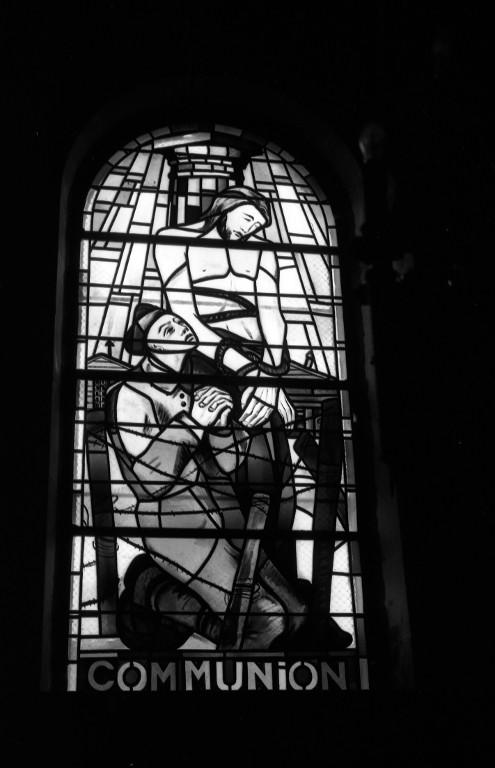 Verrières (6) : Vierge à l'Enfant, Laissez venir à moi les petits enfants, l'Offrande, l'Action de grâce, le Sacrifice, la Communion, église paroissiale Saint-Maimboeuf (Le Theil-de-Bretagne),