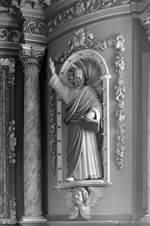 Statues (2) (grandeur nature, en pendant) : Saint Pierre, Saint Paul, église paroissiale Sainte-Marie-Madeleine (Mondevert),