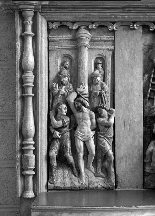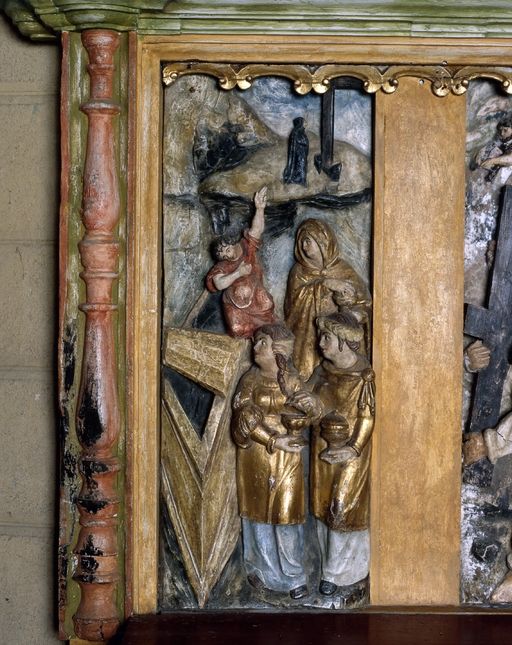 - Passion, Flagellation du Christ, superposition, Descente de Croix, Déploration), Calvaire, Montée au Calvaire, Les Saintes Femmes au tombea
