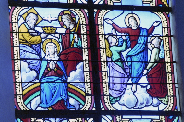 Baie 4 : DON DES DEMOISELLES VIEL & FOUGERES INSTITUTRICES-1892" ; signature : "LECOMTE ET COLIN RENNES 1893 ; Baie 5 : EN SOUVENIR DE Mr ROYER DECEDE LE 4 MAI 1882 ; baie 6 : OFFERT PAR MR F. COCHET RECTEUR DE MARPIRE 92signature : " LECOMTE ET COLIN RENNES 92" ; baie 7 : R.M.F. DON DES CARMELITES DE MARPIRE 1893, LECOMTE ET COLIN RENNES 1893 ; baie 8 : DON DES TERTIAIRES FRANCISCAINES DE MARPIRE 1893 ; baie 9 : DON DE Mlle EMILIE DE BOURGNEUF DE TREMBLAY 1893 ; baie 10 : DON DE Mme VEUVE DURAND 1893, LECOMTE ET COLIN, RENNES 1893 ; baie 11 : DON DE M. L'ABBE TRUFFAULT EUDISTE ; baie 12 : DON DES FAMILLES POIRIER ET BRIDAULT, LECOMTE ET COLIN, RENNES 1893.