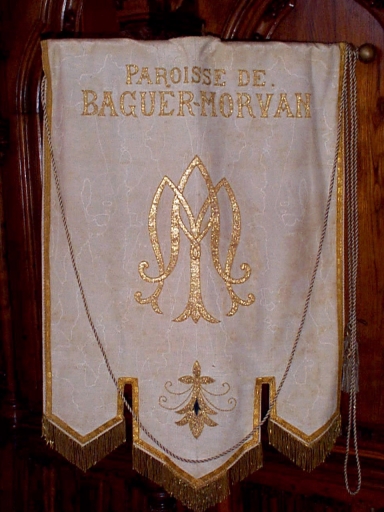 Inscription au verso : Paroisse de Baguer-Morvan, lettres AM enlacées.
