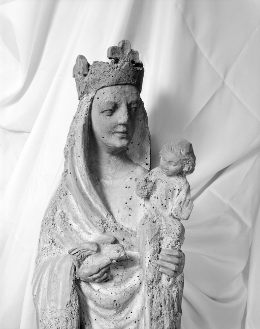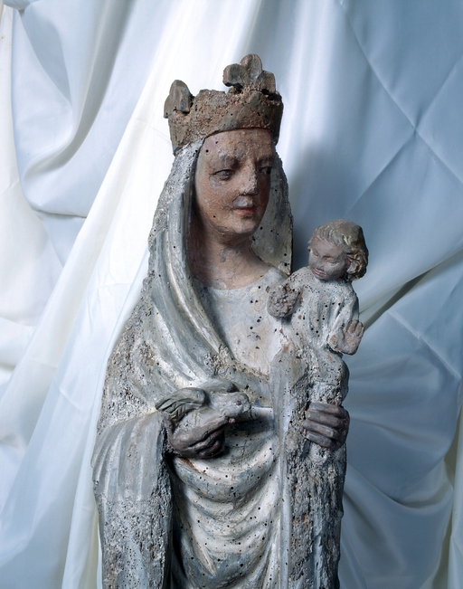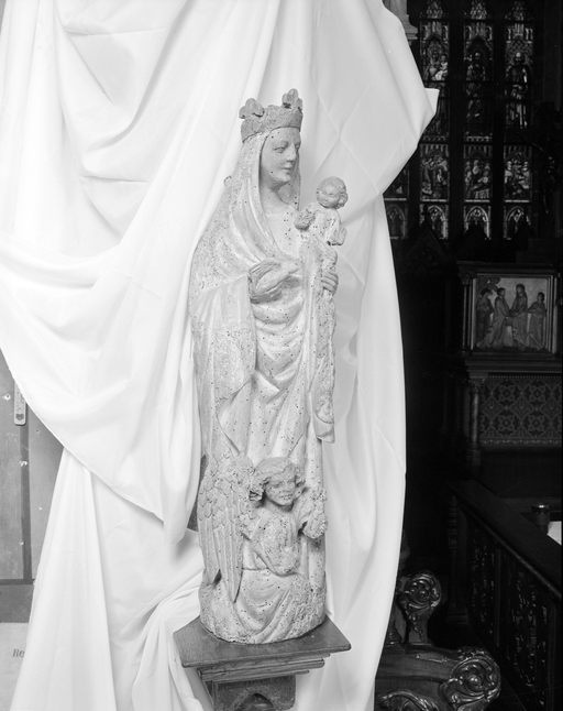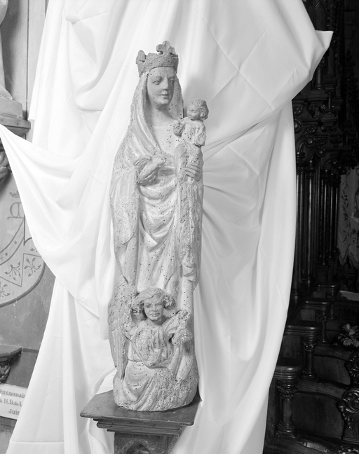 Statue de Vierge à l'Enfant probablement réalisée au 14e siècle ; elle a été donnée à la paroisse vers 1980.