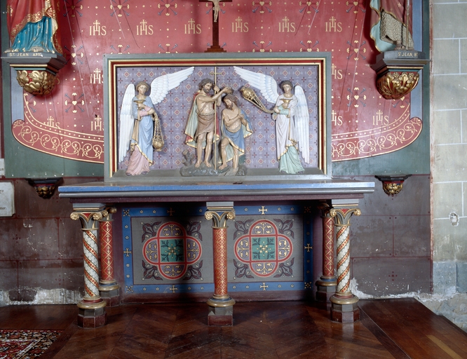 Ensemble de l'autel de saint Jean-Baptiste (autel, retable, degré, peinture monumentale) : Baptême du Christ,