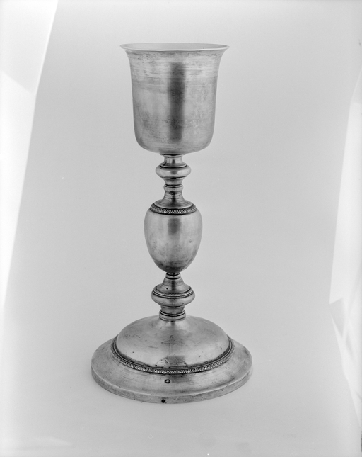 Sous le pied : poinçon d'association des orfèvres et poinçon de maître : losange vertical, J B (?) (?), les 2 premières lettres séparées par un calice (?) surmonté d'une hostie ; sur le dessus du pied près de la croix : poinçon 1er titre 1809-1819 ; sur la bate : moyenne garantie ; sur la coupe : 2 poinçons illisibles dont l'un a la forme extérieure du coq combattant.