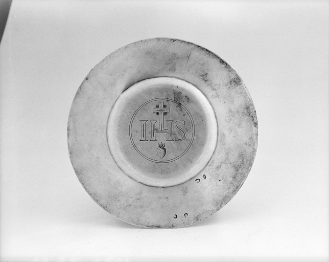Poinçon de maître : losange vertical, 3 lettres en triangle pointe en bas J B (?) F séparées par un flambeau ?