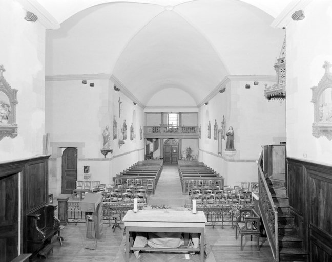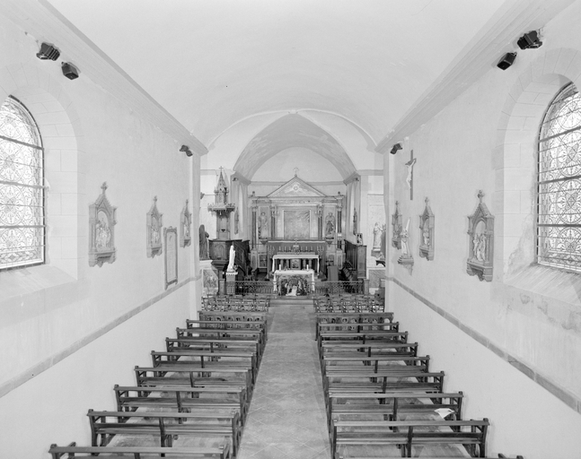L'église actuelle, bâtie en 1835, se caractérise par la grande homogénéité de son mobilier et présente ainsi un exemple très intéressant car peu remanié d'un aménagement complet du 2e quart du 19e siècle. En effet, la majorité du mobilier important (les autels-retables avec leurs statues et tableaux, les clôtures, les lambris, la chaire, les confessionnaux et la tribune) a été réalisée dans la décennie suivant la construction, mais sans doute par défaut d'un financement immédiat, l'achèvement définitif du décor de l'église ne fut réalisé qu'en 1864 avec l'intervention d'un peintre-doreur rennais, M. Madiot.