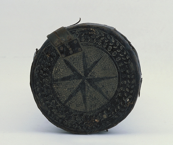- PIOBJT Ensemble du 18e siècle ; la boîte du calice, en cuir ouvragé, présente un intérêt particulier de part la rareté de ce type d'objet.
